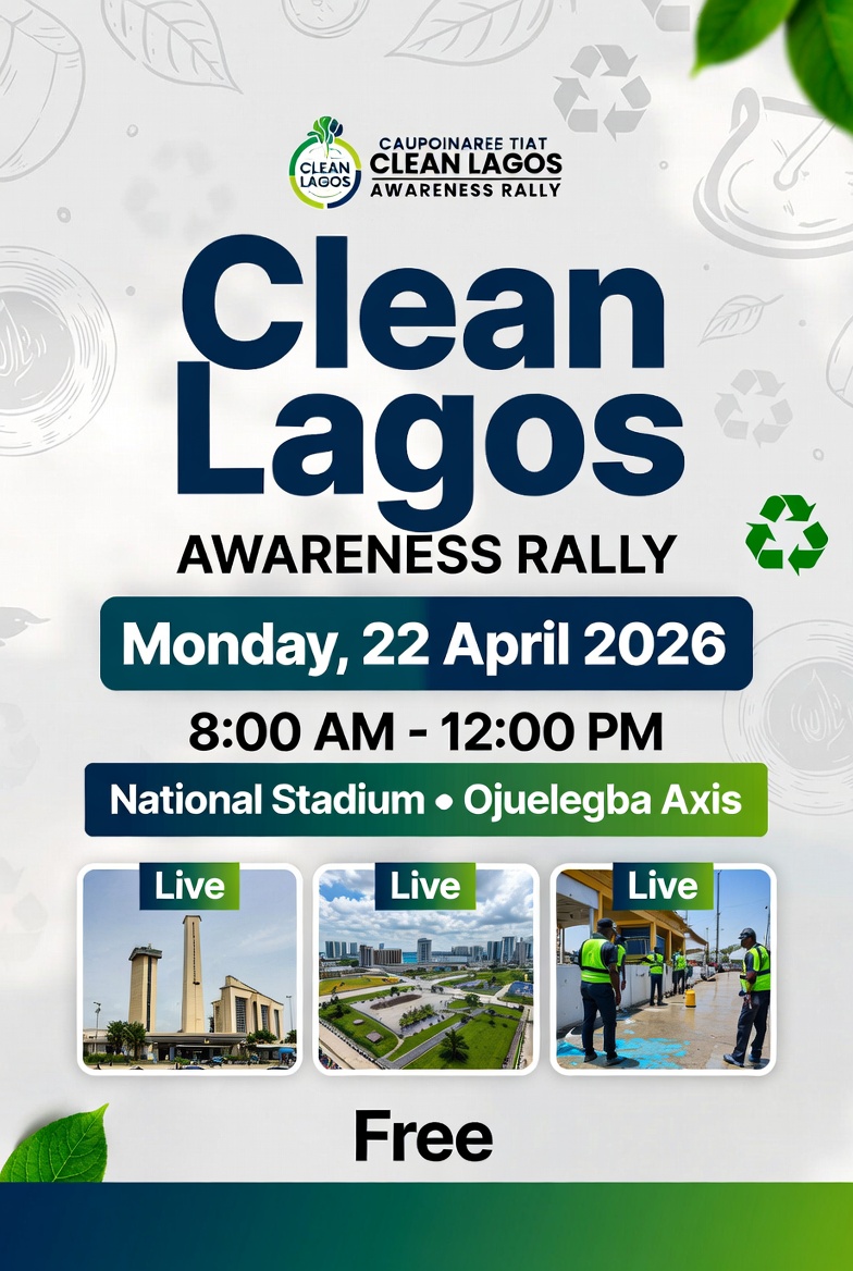 << All Events Clean Lagos Awareness Rally April 22 @ 8:00 am - 12:00 pm A peaceful rally and awareness walk advocating for environmental responsibility and cleaner public spaces across Lagos. Share This Event 161820 DD DAYS HH HOURS MM MIN SS SEC Details Date: April 22 Time: 8:00 am - 12:00 pm Cost: Free Event Category: Activism & Public Events Venue National Stadium → Ojuelegba Axis National Stadium → Ojuelegba Axis ojuelegba, 100001 Nigeria + Google Map Organizer Green Future Lagos Email greenfuturelagos@gmail.com + Google Calendar+ iCal Export « Lagos Morning Wellness Walk Street Five-A-Side Football Tournament »